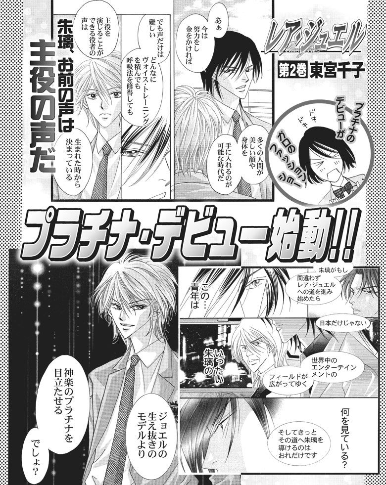 世界が注目するG・ジュヌのショーでデビューするプラチナ達。誰より格好良く目立つ ウォーキング指南を任された朱璃だけど!? 一方『レア・ジュエル』を通じ運命的に重なる 朱璃と刃の進むべき道は!? 大注目☆芸能サクセスストーリー!!