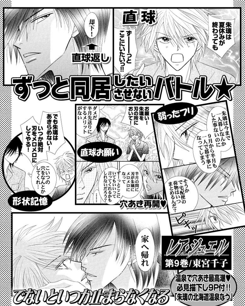 朱璃と刃の夏休み同居もあとわずか。夏休み後もずっと同居したい朱璃と、絶対家に帰したい刃の攻防の行方は!? ドラマOBKの温泉付き北海道ロケも始まり絶好調の第9巻!必見描下し「朱璃の北海道温泉なう」9ページ付き★