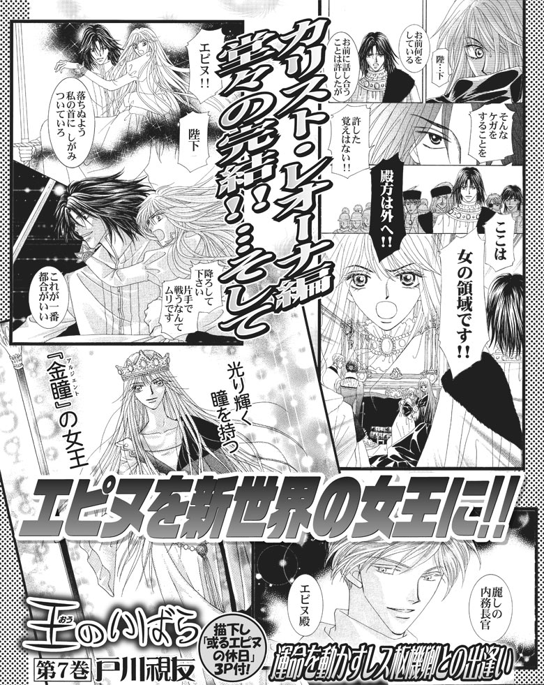 結婚式の招待客に紛れ込んだ刺客退治を任されたエピヌ。その秘策『森で魚を釣る作戦』とは!? カリスト・レオーナ編完結!! そして舞台は『新世界の女王』への運命が待つイエズルム聖庁へ!! 描下し『或るエピヌの休日』3Pも必見♪