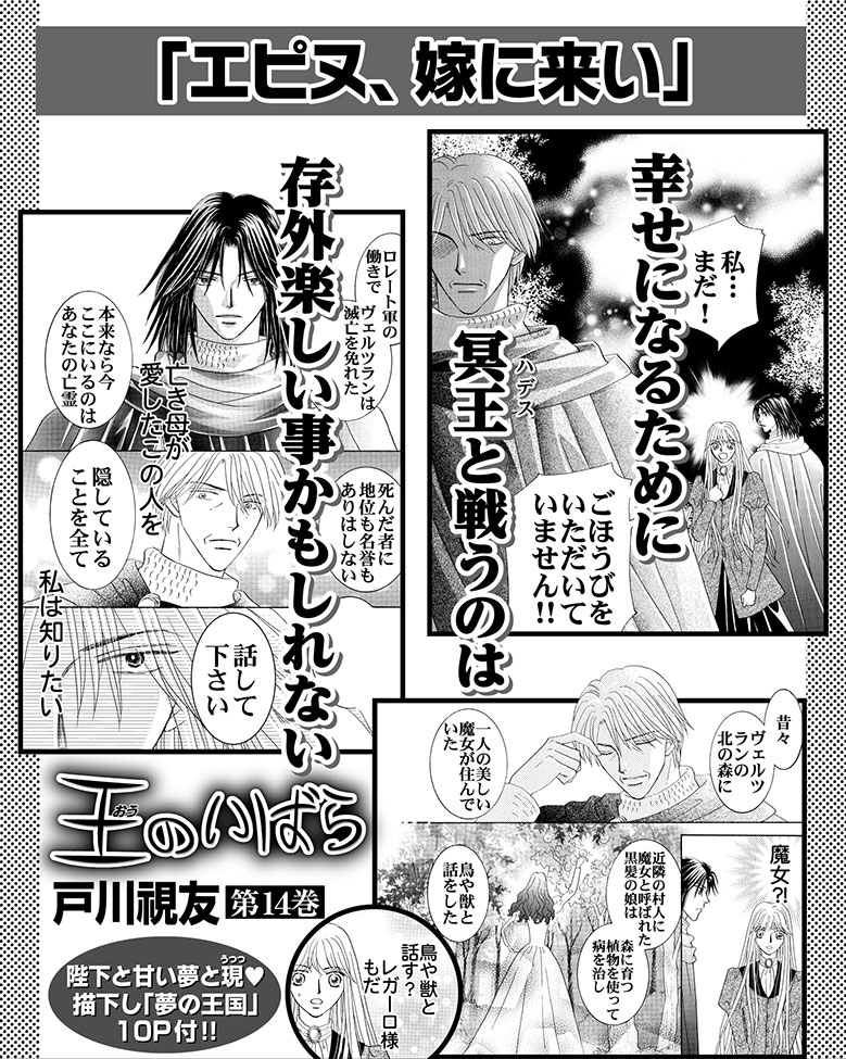 実の祖父でありながらロレートと敵対し続けるヴェルツラン皇帝の真意を知りたいエピヌ。ヴェルツランを救った ご褒美に真実を語ってほしいとお願いし!? 西大陸の女王&陛下の嫁当確目前の第14巻。描下し「夢の王国」10P付!!