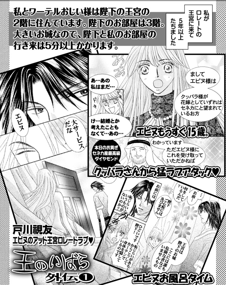 オール描下し!! エピヌ&陛下の王宮ライフに密着したアット王宮ロレートラブ♪ もうすぐ15歳のエピヌ。お風呂タイムに陛下が訪ねてきたらどうするの!? 15歳解禁のロレートの愛の夜祭って!? カリスマエピヌのプライベートご披露♪