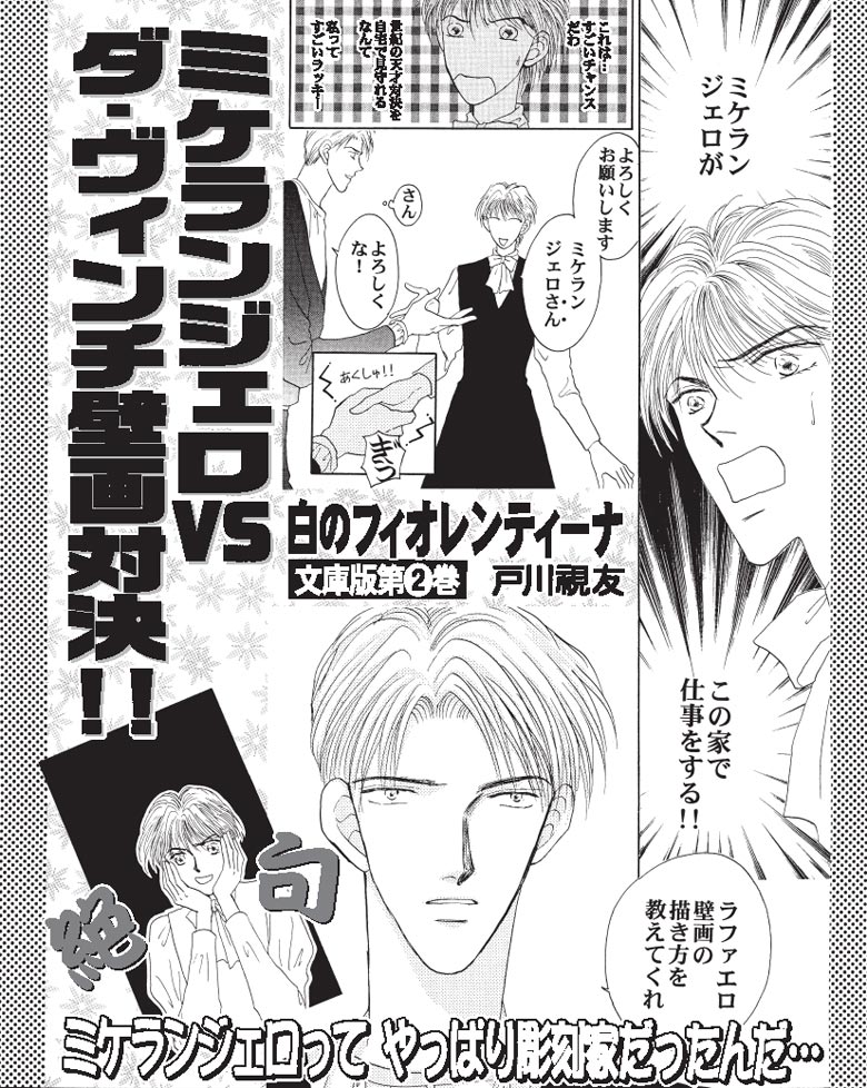 絢爛たるルネサンスが花開く、16世紀フィレンツェ。そこに白い聖母を描く一人の少女がいた。ミケランジェロの絵画に衝撃を受けたフィオレンティーナは更なる高みを目指し修行に明け暮れる。そんな中、フィレンツェの街は二大天才・ミケランジェロとダ・ヴィンチの壁画対決で盛り上がるが…!?