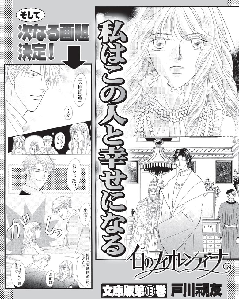 絢爛たるルネサンスが花開く、16世紀イタリア。そこに白い聖母を描く一人の少女がいた。遂にアルフォンソとの結婚を許され婚礼の日を迎えるフィオレンティーナ。新たな絵画「マリアの生涯」制作も決まり、充実した日々が訪れる。が、そんな幸福のさなか突然猊下が倒れ…!?