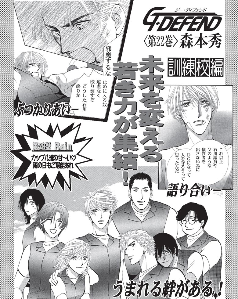 国会警備隊隊長・石川とSP・岩瀬の近未来ラブ&アクション。訓練校入学後も見えない殻を被り続ける石川に西脇は…!? 噂の乱闘事件の全貌がついに明らかに!! 他、DGカップル達が過ごす甘い雨の夜をご堪能♪の第22巻!!