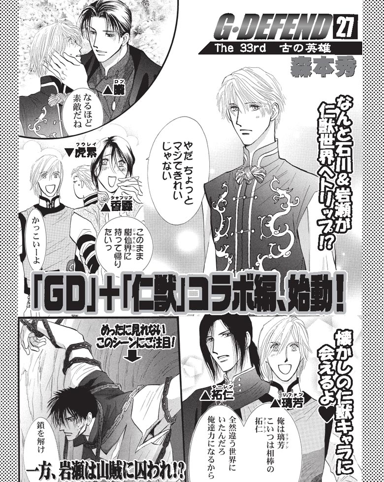 国会警備隊隊長・石川とSP・岩瀬の近未来ラブ&アクション。初期代表作「仁獣芳烈伝」と「GD」のコラボ編が登場!! 石川&岩瀬が仁獣世界へトリップし、懐かしのキャラとご対面!? 他、城&アレクを描いた「境界線」と番外編「何故あの時あそこにいたか」も収録!!