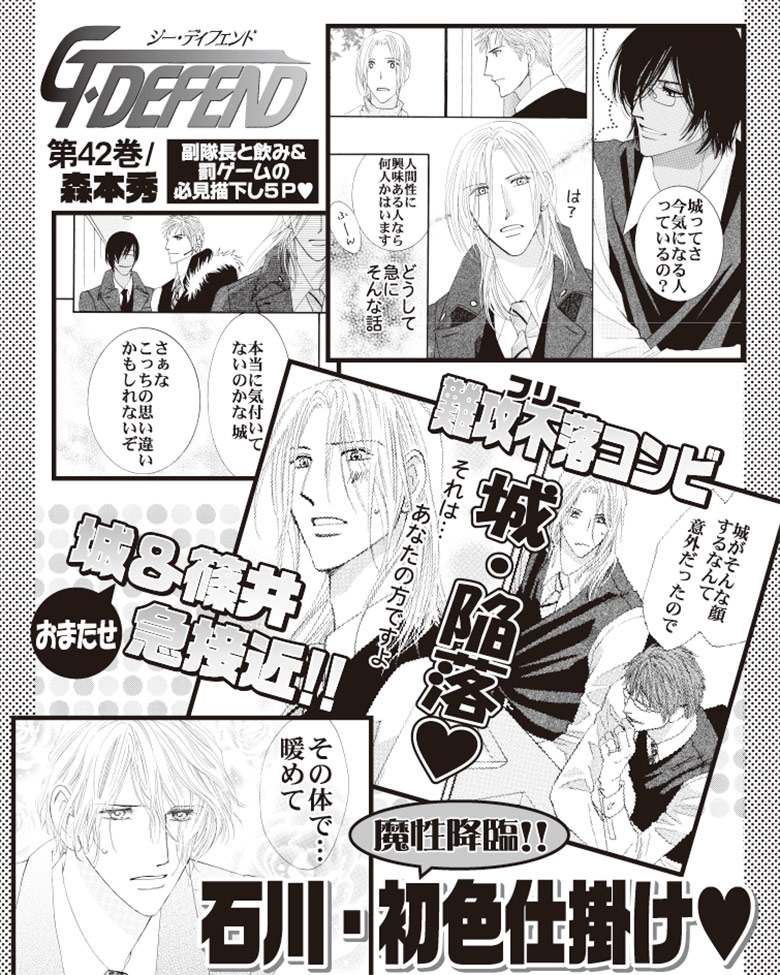 国会警備隊隊長・石川とSP・岩瀬の近未来ラブ&アクション第42巻!! 城の想い人発見&DGに巡り合わせいっぱいの「REPORT」と石川・ 初色仕掛けで魔性降臨の「無自覚な武器」を収録!! 他、篠井とお酒と罰ゲームで贈る番外編5Pも必見♪