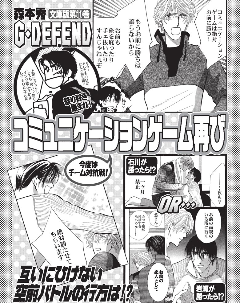 国会警備隊隊長・石川とSP・岩瀬の近未来ラブ&アクション第11巻。コミュニケーションゲームの季節再来!! 今度は石川組対岩瀬組のチーム戦でバトルは一層ヒートアップ!?の「Battle!!」など2話を収録! 番外編に、ダグが主役の「ここが好き みんな好き」など2編を収録。