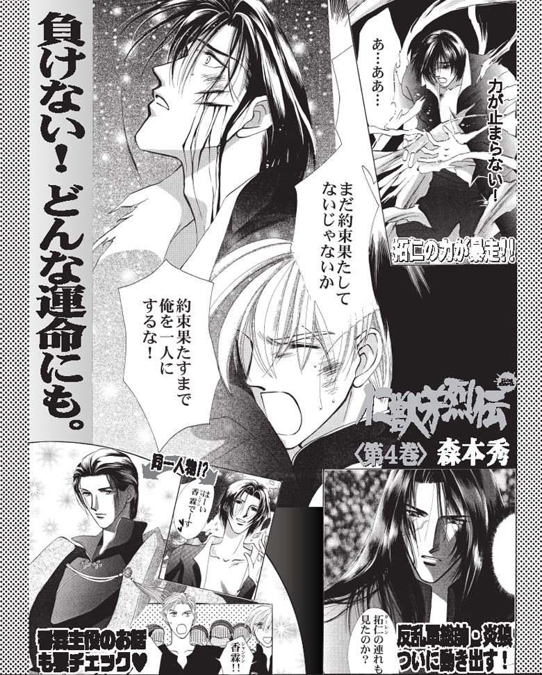 昔々の中国。璃芳(リファン)の存在がついに反乱軍総帥・炎狼(イェンラン)に知られてしまう。炎狼は璃芳を捕えようと多勢の兵を送り込み…!? 一方樹仙界では、古くから伝わる「仁獣伝奇」に秘められたある予言の時期が近づくのを感じた帝達が、璃芳と拓仁(ターレン)に2人の更なる運命を告げようとしていて…!?