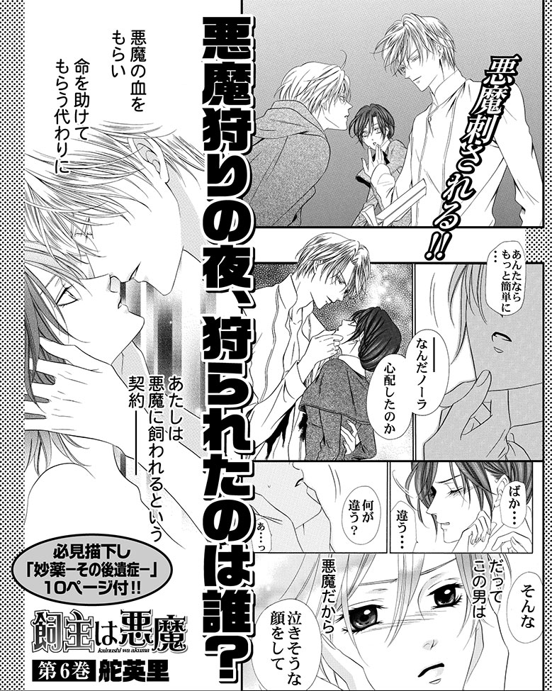 華麗なるペットライフ第6巻。教会以外で悪魔を狩る謎の男を捕えに出たノーラ達。が、男の剣は2人を襲い…!? 悪魔大ピンチ!?の悪魔狩り編の他、教皇庁を騒がせる恋の妙薬編を収録!! 描下しは麗しさ増量★『妙薬−その後遺症−』10P!!